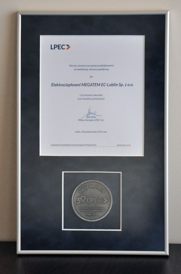 Podziękowanie za wieloletnią współpracę od LPEC