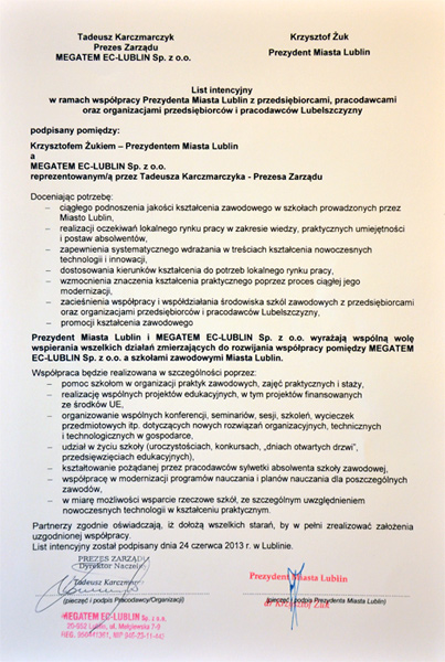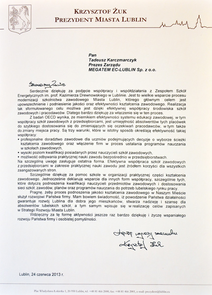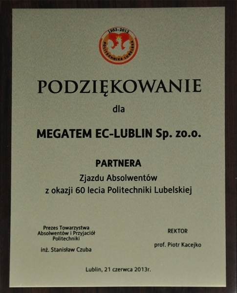 Podziękowania dla Megatem EC-Lublin