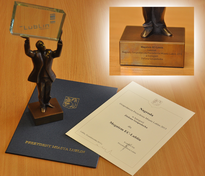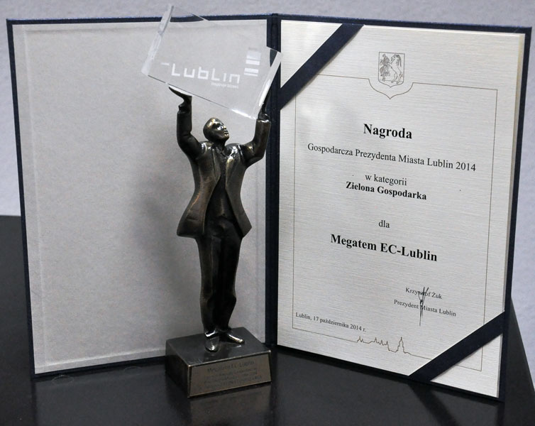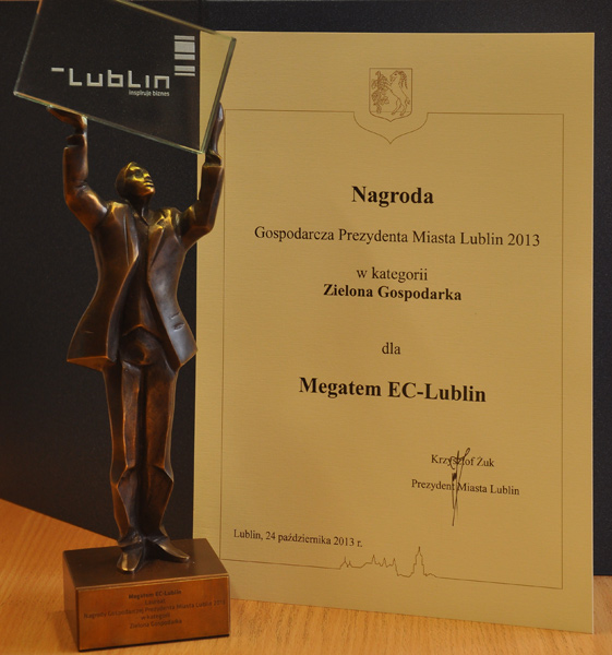 Miło nam poinformować o uzyskaniu Nagrody Gospodarczej Prezydenta Miasta Lublin 2013 w kategorii Zielona Gospodarka. Nagrodę otrzymaliśmy za wprowadzenie nowoczesnej technologii uzdatniania wody dla potrzeb technologicznych. Dzięki zastosowanym urządzeniom zmniejszeniu uległ pobór wody z otoczenia oraz produkcja ścieków. Dzięki stosowaniu w obiegach wody o doskonałej jakości możliwe jest podniesienie sprawności i dyspozycyjności urządzeń wytwórczych oraz ograniczenie ilości awarii.